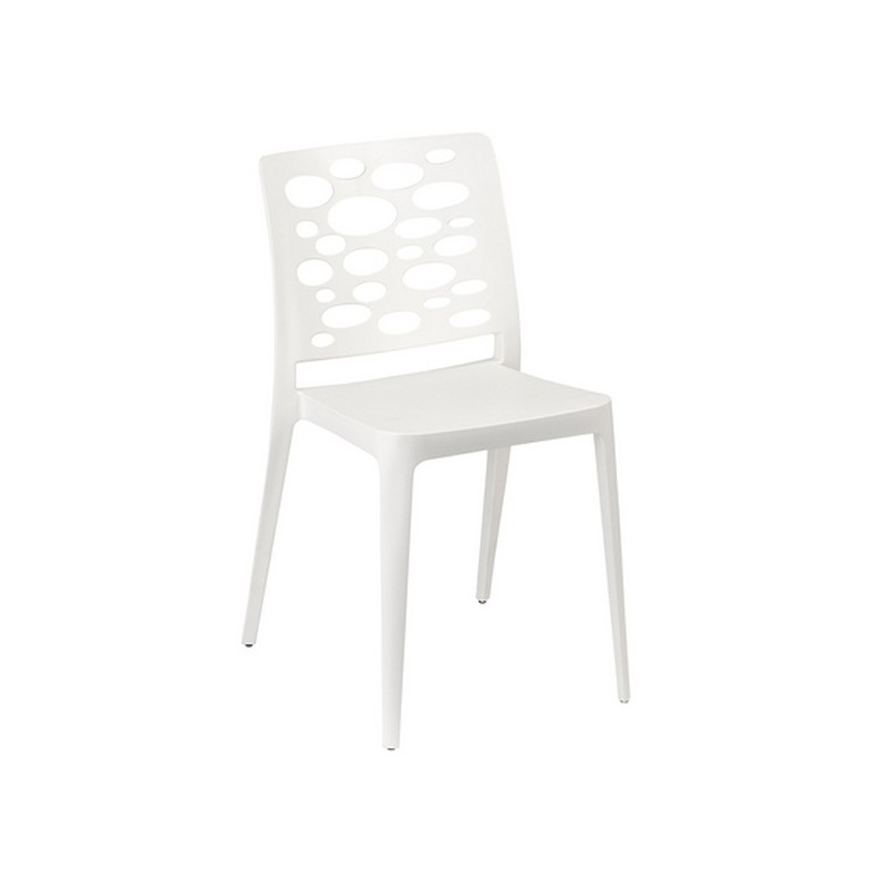 Idóneo asiento para uso en exterior, apilable, fabricado monobloc en polipropileno y fibra de vidrio inyectado en gas. Disponible en varios colores.
