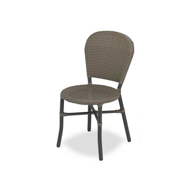 Silla para el uso en exterior, apilable. Armazón en tubo de aluminio plastificado, asiento y respaldo médul sintética 100% virgen, no reciclada, tejida a mano. Otorga robustez, fabilidad y elegancia.
