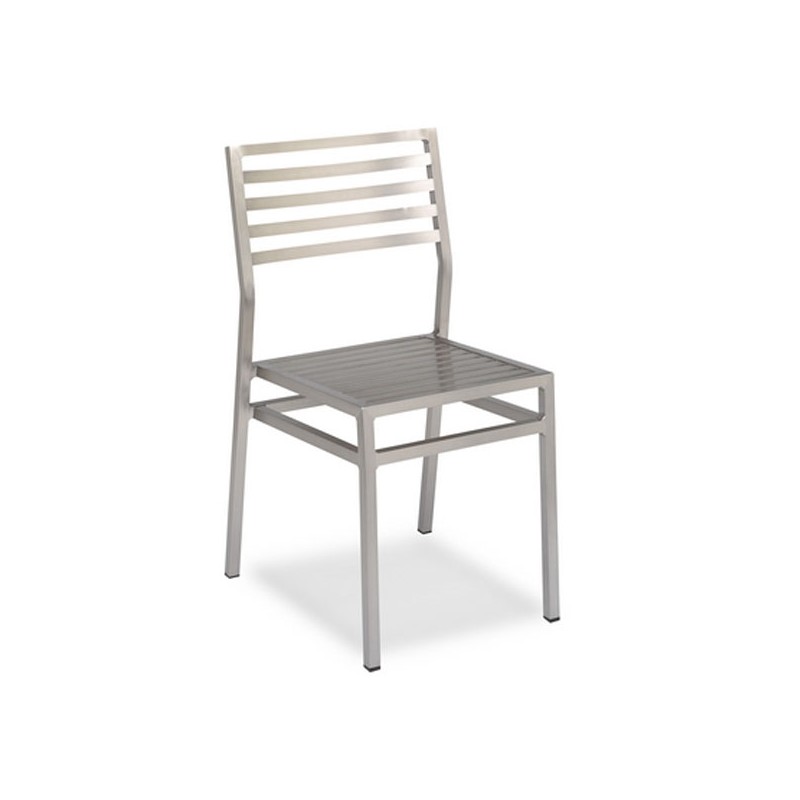 Silla para el uso en exterior, apilable. Armazón, asiento y respaldo en tubo de aluminio anodizado con un acabado inox.