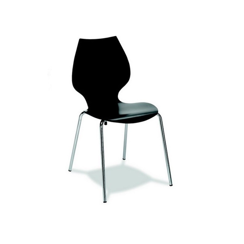 Silla de interior fabricada en madera contrachapada y armazón de tubo acerado. Perfecta para bar, restaurante o cafetería.